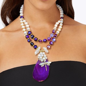 Отпразнувайте нейната елегантност с нашето колие от халцедон с висулка от естествена перла