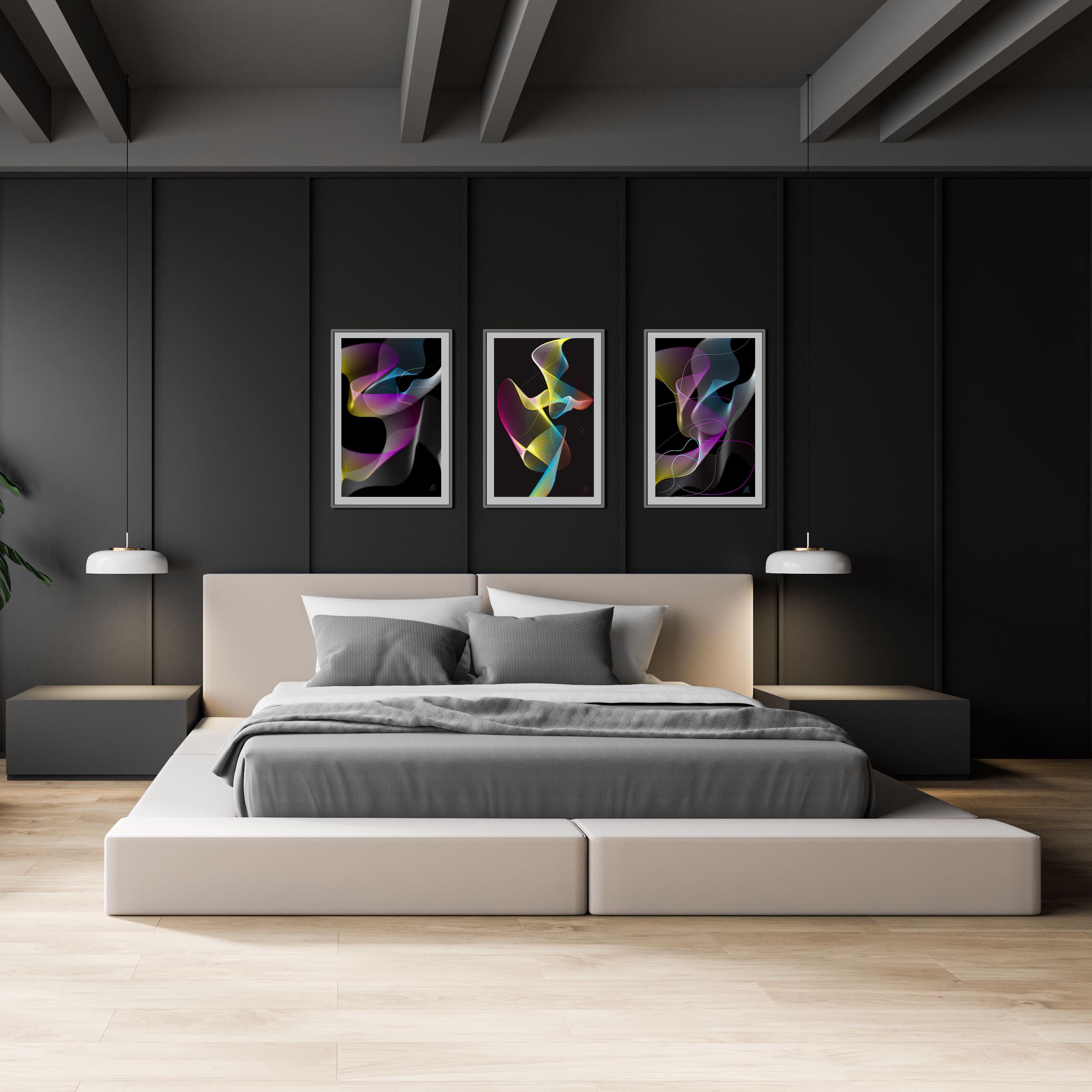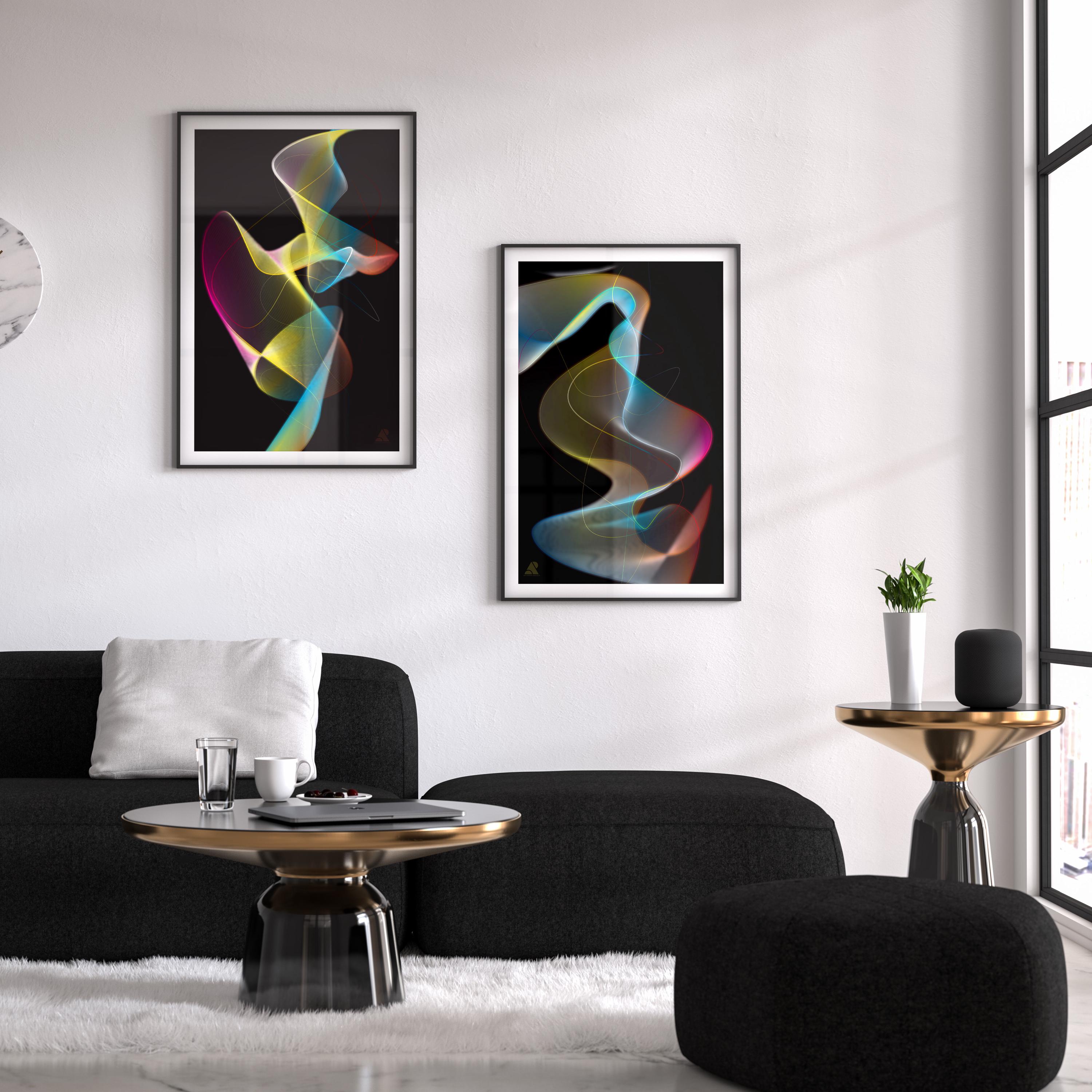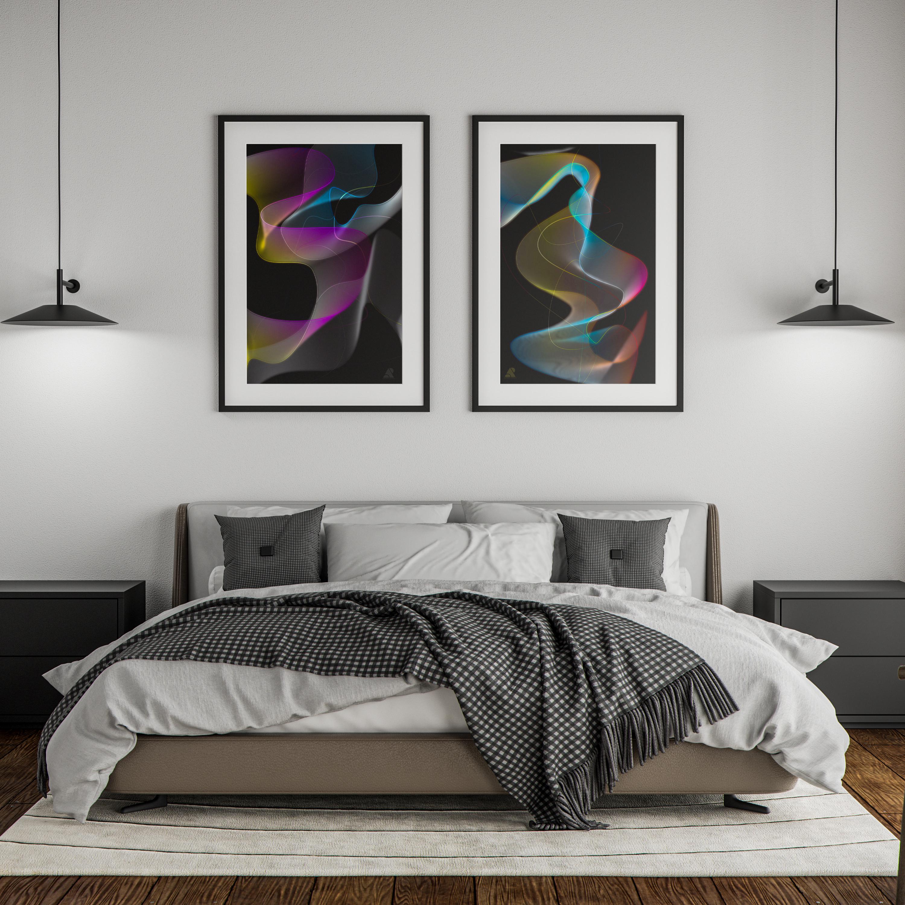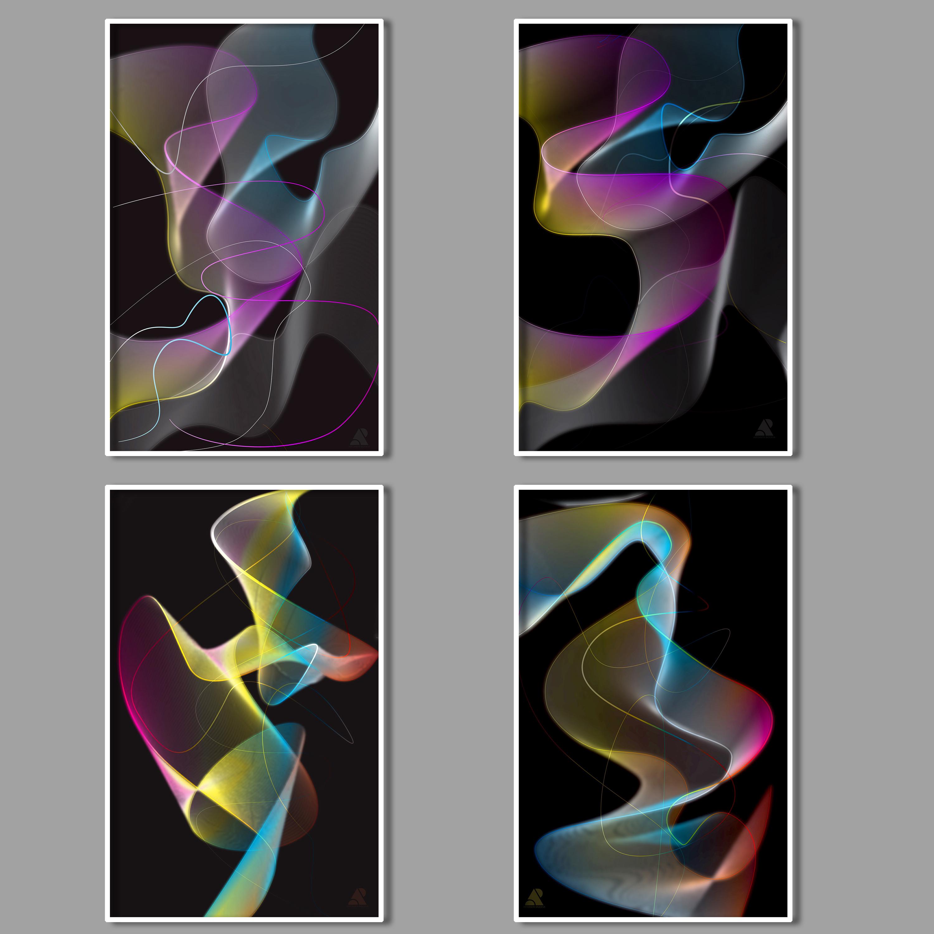 Transform your space with this set of 4 stunning abstract digital prints in rich colors. This elegant set combines bold yet harmonious swirling elements, a luxurious finish, perfect for creating a sophisticated gallery wall in living rooms, dining rooms, bedrooms or offices.