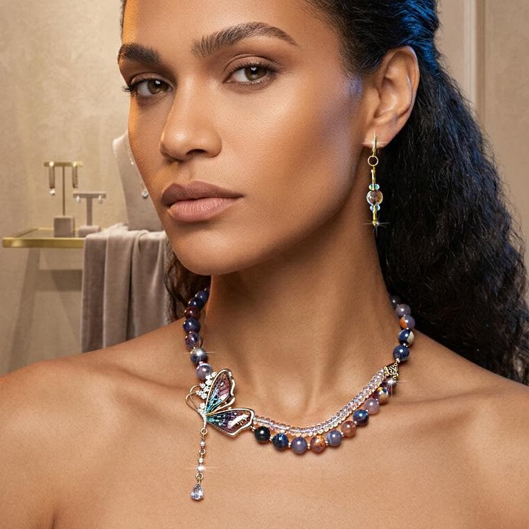 Boost your style with this stunning Fire Agate Necklace with Egyptian Opal – a handmade statement necklace designed to attract attention and stand out in any search on Etsy. This unique blue gemstone necklace combines natural fire agate beads and Egyptian opal stones, creating a luxurious and eye-catching design. The artistic butterfly detail adds a distinctive and elegant touch, making this necklace a true statement jewelry piece. If you're searching for: fire agate necklace Egyptian opal jewelry blue gemstone necklace handmade beaded necklace statement necklace for women 👉 This piece is exactly what you need. Perfect as a gift for her, birthday gift, anniversary gift, or boho jewelry addition. This handmade necklace is ideal for women who love bold, artistic, and nature-inspired jewelry. ✔ Fire agate gemstone necklace ✔ Egyptian opal jewelry ✔ Handmade statement necklace ✔ Blue beaded necklace ✔ Unique butterfly pendant This statement necklace for women is trending in searches and designed to help you stand out in the competitive handmade jewelry market. Don’t miss the chance to own a unique handmade necklace that combines elegance, color, and individuality.