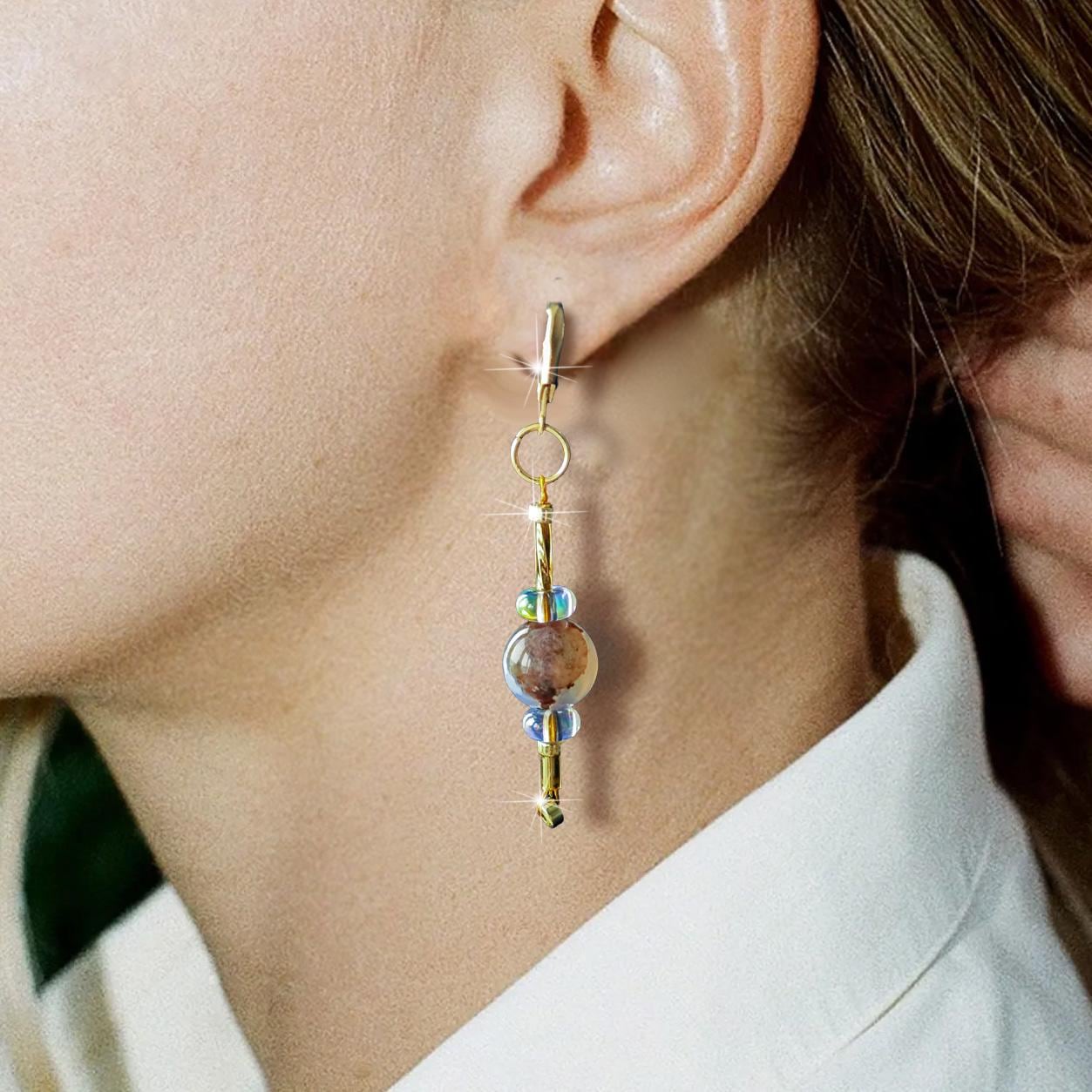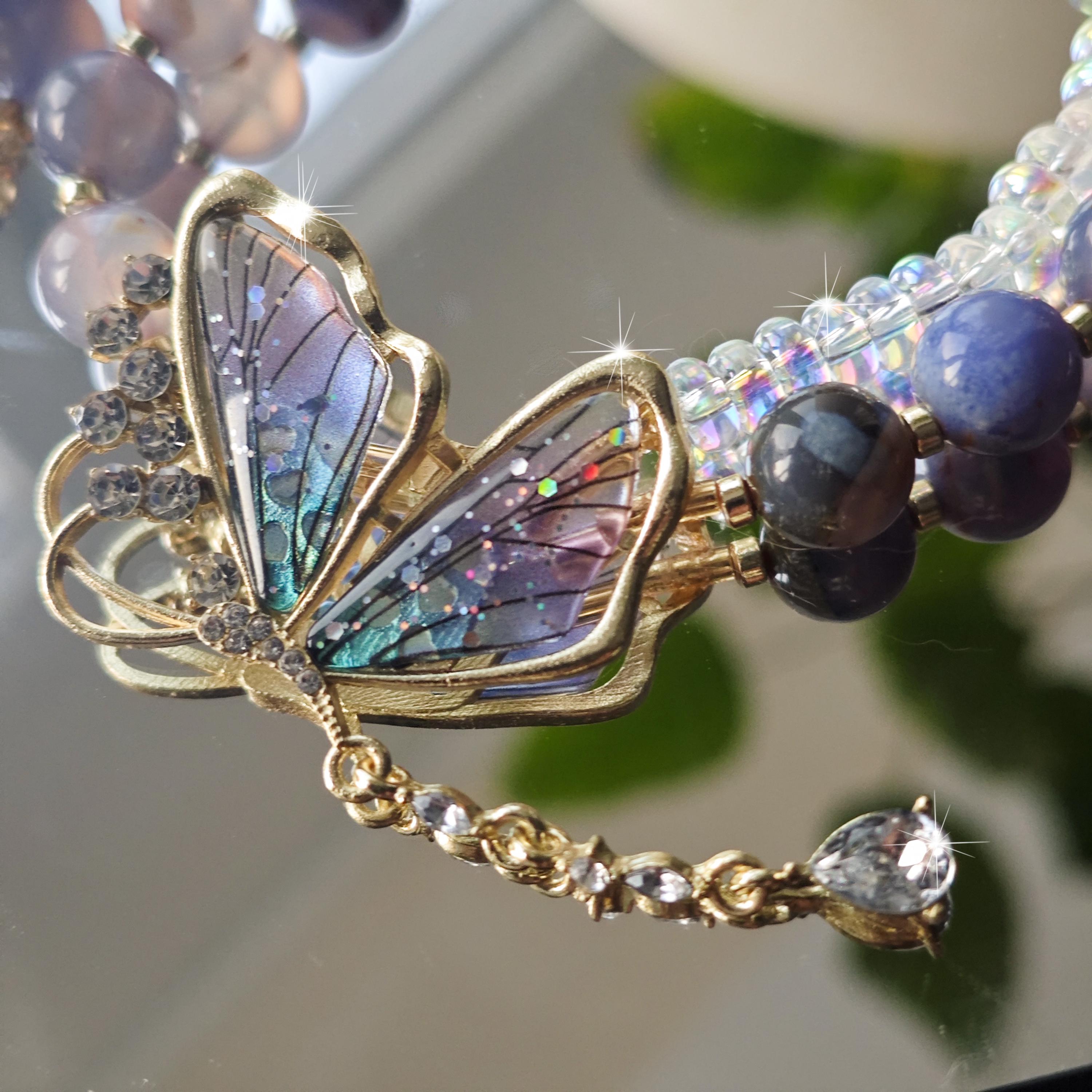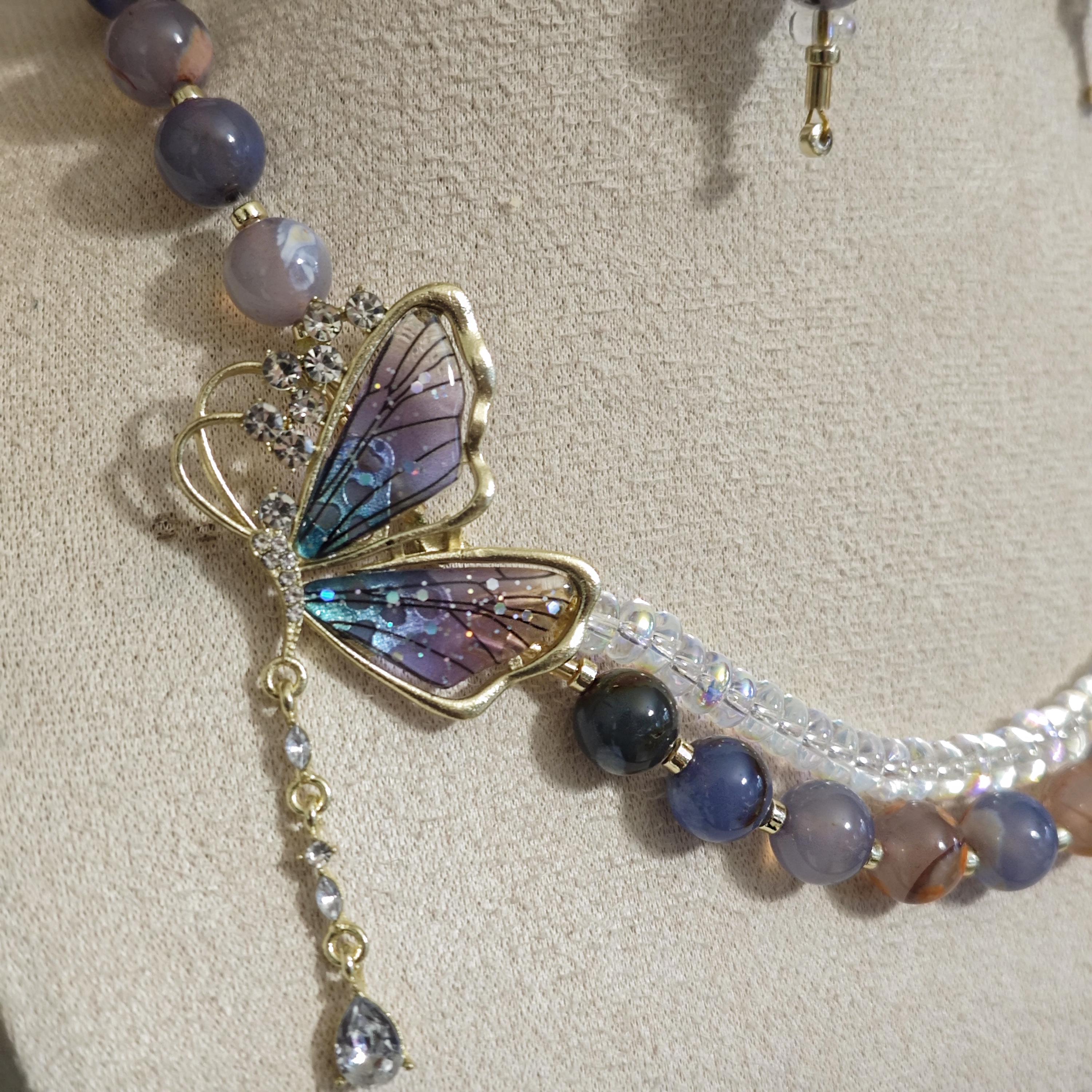 Beautiful, natural, handmade necklace made of fire agate, synthetic opal and gold plated accents. Stylish necklace. Butterfly brooch made of synthetic zircon, glass and alloy. The set also includes earrings in the style of the necklace.