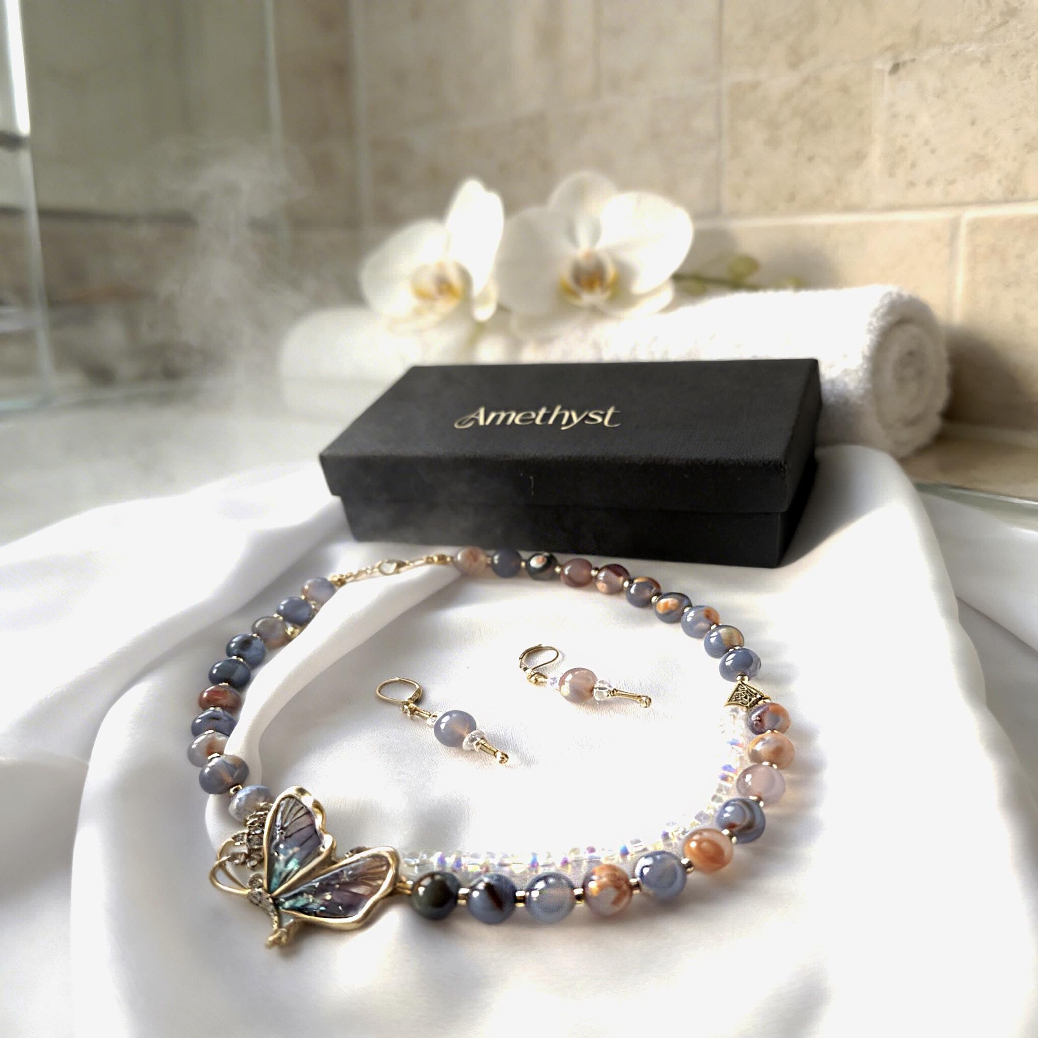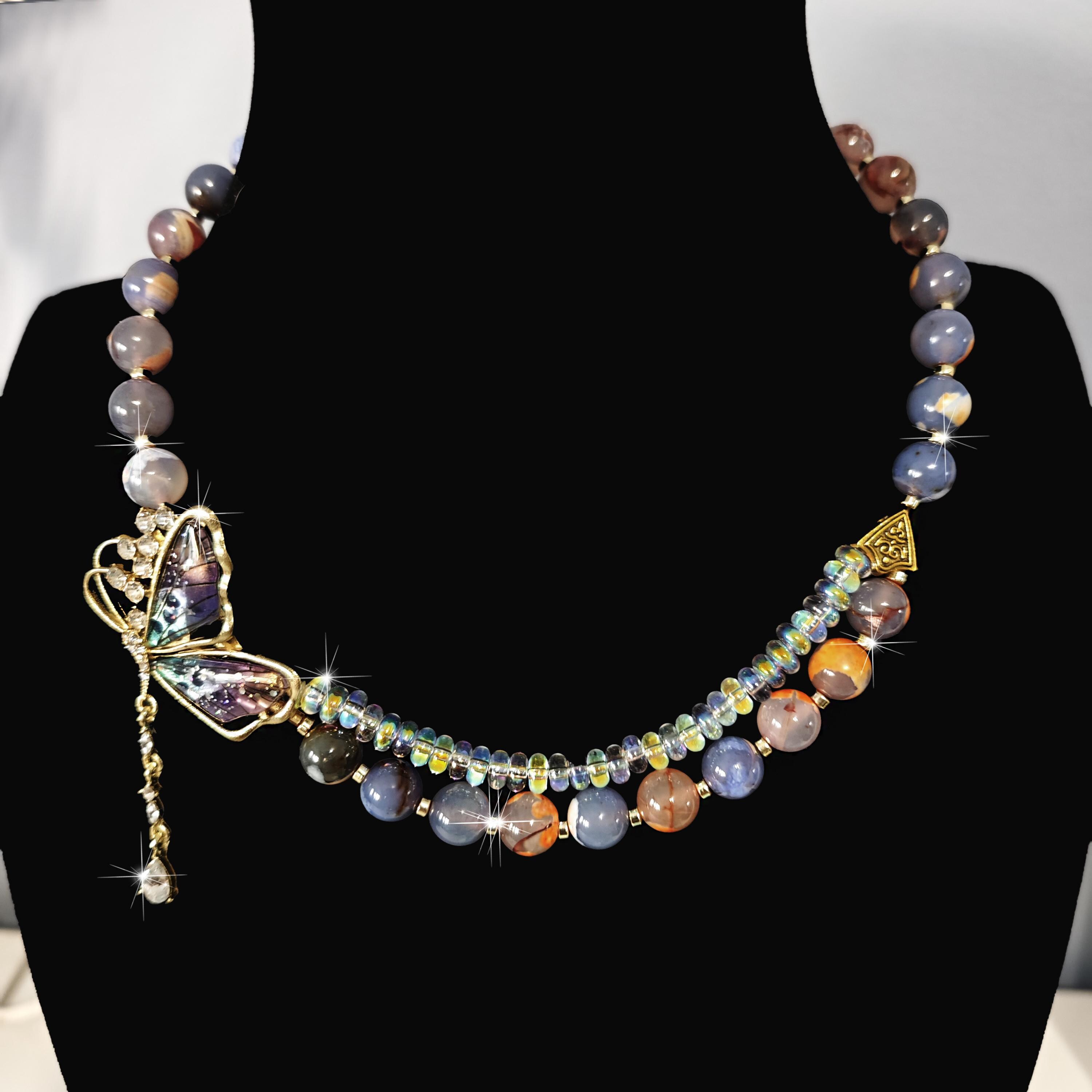 Experience the stunning energy of genuine agate stones and the sparkle of opal and add a splash of color to your accessories. Whether you're craving a striking beaded necklace, want to complement your everyday style, or are looking for a handmade gift for the holidays, this gemstone necklace will be a treasured addition to any collection.